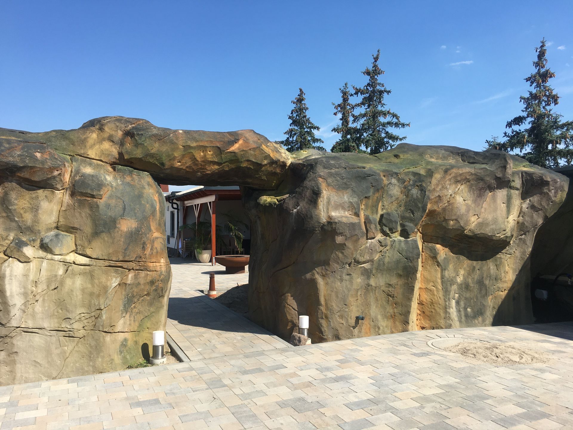 Bemalung und Patinieren einer neugebauten Felsenlandschaft einer Wellnessoase